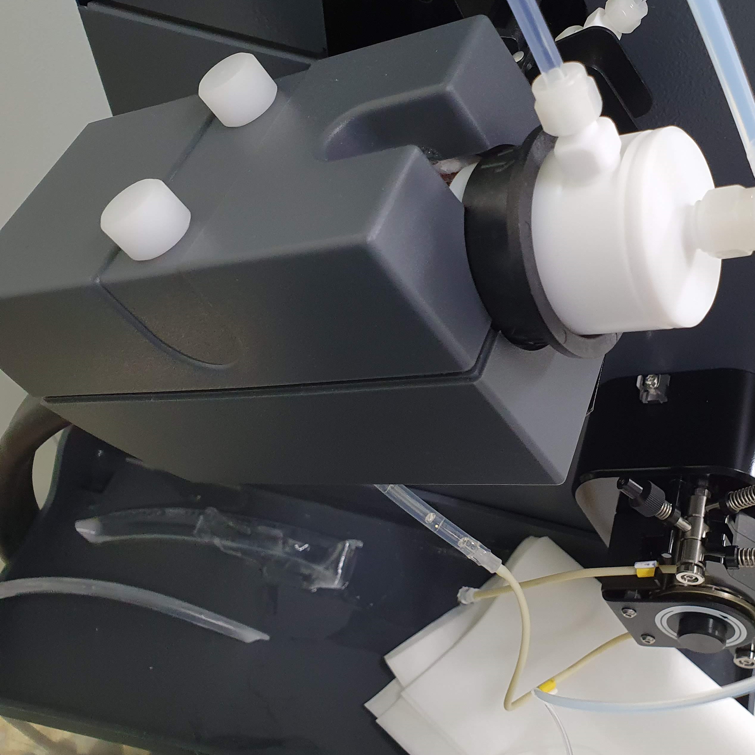 스프레이 챔버 아래쪽으로 폐액이 드레인 되고 연동펌프의 힘에 의해 폐액은 드레인 탱크로 이동한다. 이 때 연동 펌프 튜빙과 드레인 탱크를 연결해주는 PVC 튜브가 수일~몇주만에 녹아서 탈락되는 문제이다.